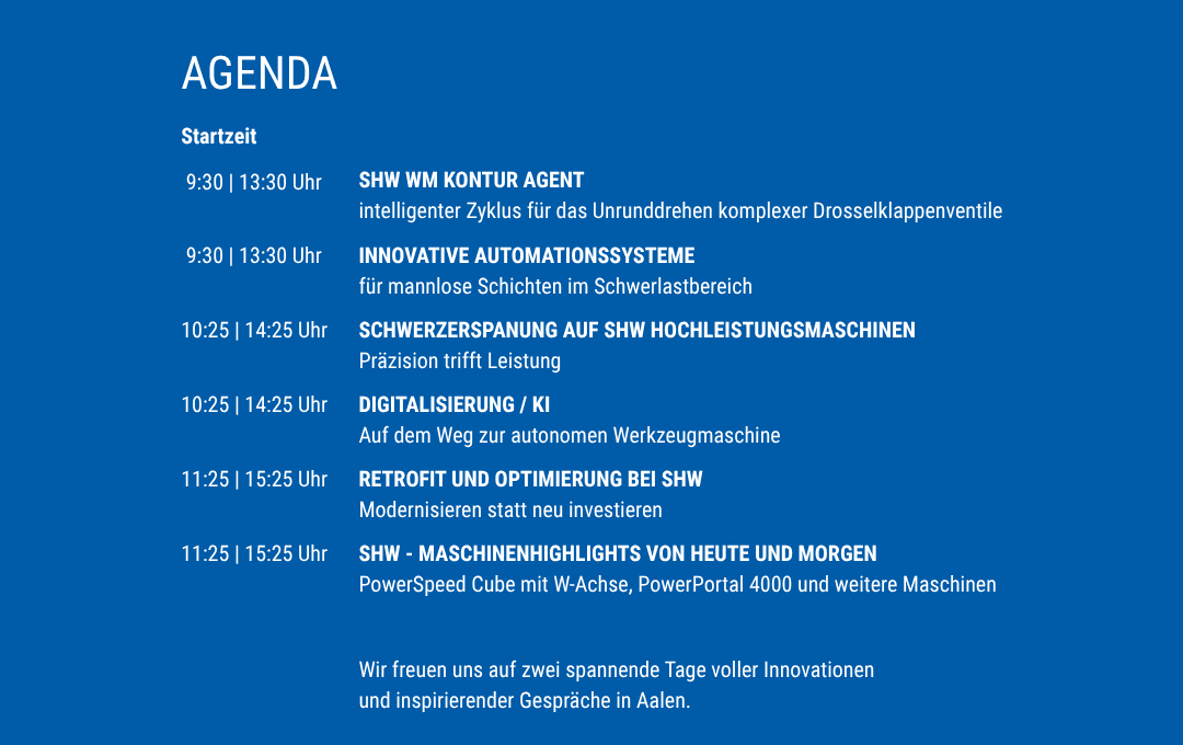 Für aktuelle Informationen zu den Produkten und Servicedienstleistungen der SHW Werkzeugmaschinen GmbH oder die Kontaktaufnahme durch einen unserer Mitarbeiter füllen sie bitte das unter dem Link zur Verfügung stehende Formular aus.