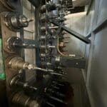Kühlmitteleinrichtung für die Kühlmittelzufuhr, wahlweise umschaltbar äußere Kühlmittelzufuhr (Duschring) auf innere Kühlmittelzufuhr (IKZ), DIN69871-AD, inkl. Kompaktfilteranlage und Doppelschaltfilter zur Reinigung des Kühlmittels. Einstellbare Druck- Mengenregelung stufenlos einstellbar über Potentiometer im Bedienungspult.